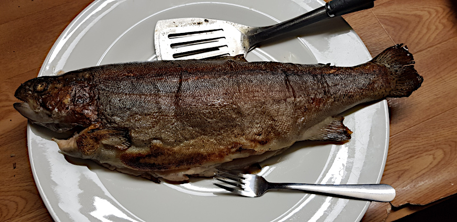 BBQ'd large trout (52cm, 1.7kg after gutting)